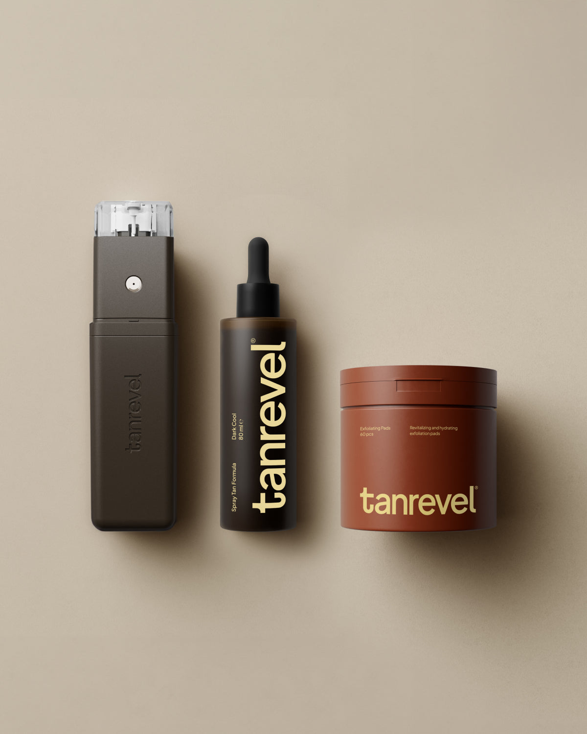 Skapa en professionell look hemma med Tanrevel® Prime & Tan Duo, ditt perfekta kit för mjuk, återfuktad och jämnt solkysst hud. Börja din rutin med Exfoliating Pads, framtagna för att varsamt exfoliera och vårda din hud. Med en kraftfull kombination av AHA, PHA och LHA stimulerar dessa pads cellförnyelse, rengör porer och förbättrar hudstrukturen, vilket skapar den perfekta basen för en jämn och hållbar brun utan sol. Berikade med niacinamid, kamomill, centella asiatica, hyaluronsyra och aloe vera, lugnar, återfuktar och mjukgör de huden samtidigt som de stärker hudens naturliga barriär. Fortsätt med Spray Tan Kit Pro, Skandinaviens mest sålda brun utan sol-enhet, för att uppnå en naturlig, gyllene ton på bara 60 sekunder.